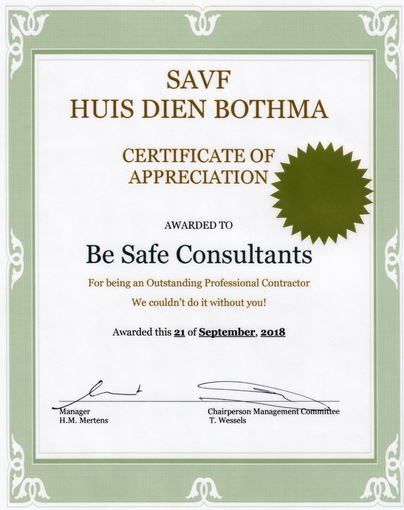 Be Safe Consultants (Pty) Ltd is a competitive training provider that specialises in training, auditing and consulting. Training material is setup according to SETA requirements and in addition incorporates Legal and other Requirements.